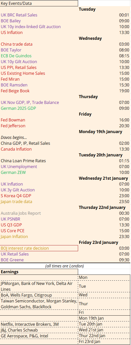 The BOE Financial Policy Committee will have a chance to outline where it sees risks ahead with its latest Financial Stability Report released on Tuesday. Bank of England speakers include Catherine Mann, also on Tuesday, and Taylor and Lombardelli on Monday 8th December. Andrew Bailey rounds things off with a fireside chat with the FT’s Chris Giles on Thursday 11th December. Their topic is also “financial stability”, which might prompt a look at the Gilt auctions taking place on Tuesday, Wednesday and Thursday this week as well as Wednesday 10th December. Although the DMO issuance update released to coincide with the Budget provided some support to Gilt markets with total issuance lower than expected and the cancellation of three long-dated Gilt auctions, this fiscal year will still be the second highest on record: