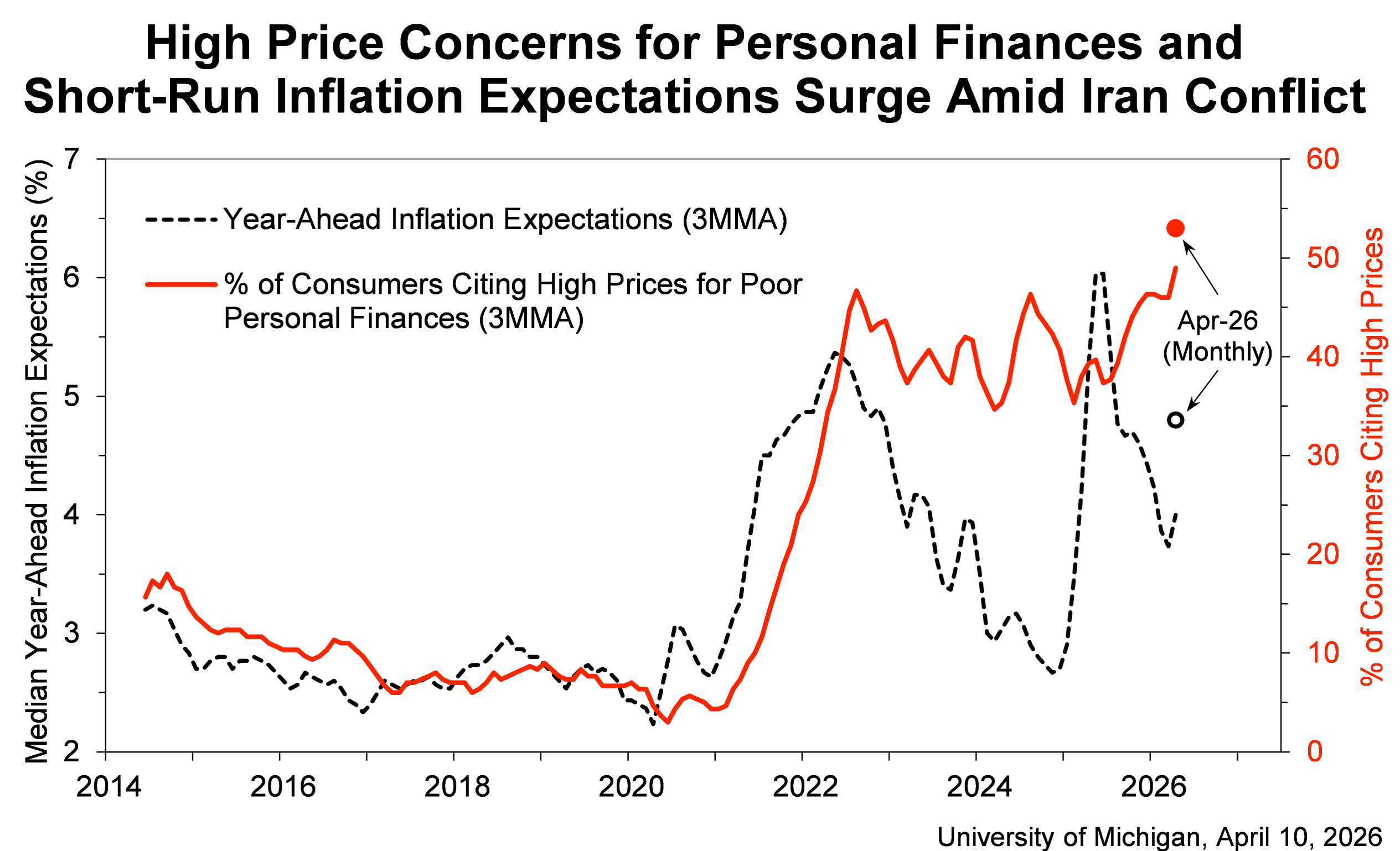 - Jerome Powell: “it’s been five years, and we’ve actually had — we had the tariff shock, we had the pandemic, and now we have an energy shock of some size and duration… And it’s one of those things where it’s, it’s a repeated set of things and you worry that that’s the kind of thing that can — can cause trouble for inflation expectations and so we worry a lot about that. And we are very strongly committed to doing what it takes to keep inflation expectations anchored at 2 percent“.